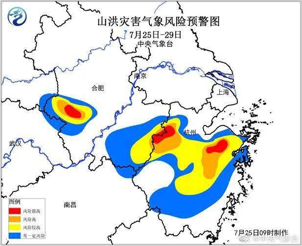 由于 累積雨量大,目前浙江北部、安徽南部等地已觸發局地山洪氣象風險紅色預警,一定要注意安全!